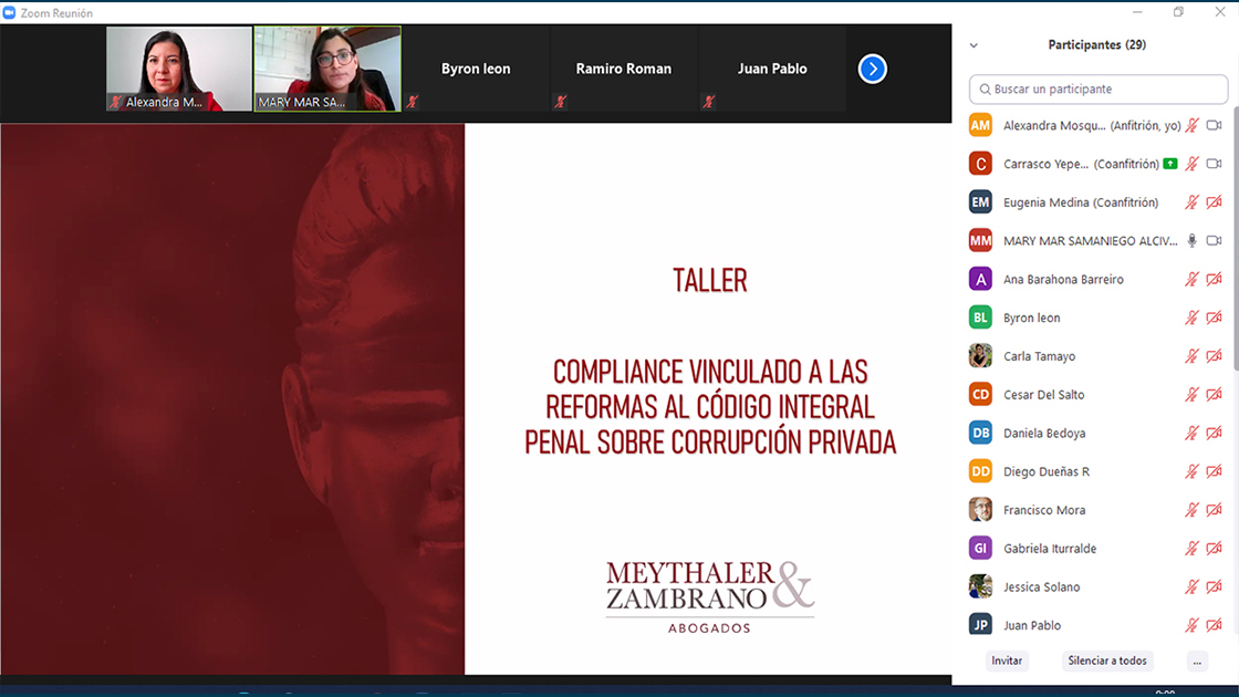 La Conferencia “Compliance vinculado a las reformas al Código Orgánico Integral Penal- COIP sobre Corrupción Privada”, desarrollada el 27 de julio de 2021, compartió a los asistentes las nuevas reformas aprobadas el 17 de febrero de 2021 que crean nuevos contenidos y sanciones en materia anticorrupción en el sector privado.